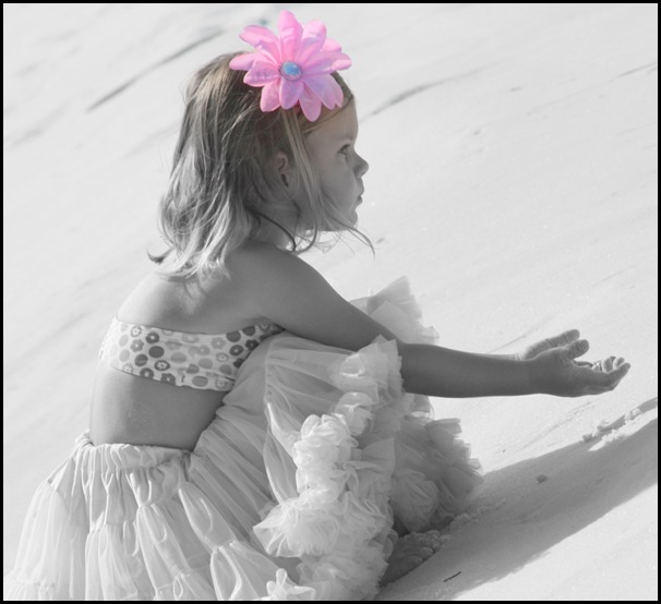 Today the girls wore matching swim suits…these were the first bathing suits we bought for the beach back in March…